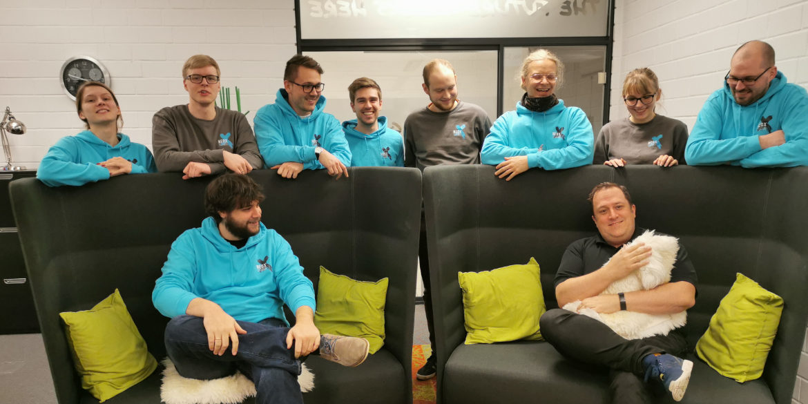 Da es nun langsam aber sicher zu kalt für unsere Neox-Polo-Shirts wird, mussten Pullover her – natürlich auch im Neox-Look!