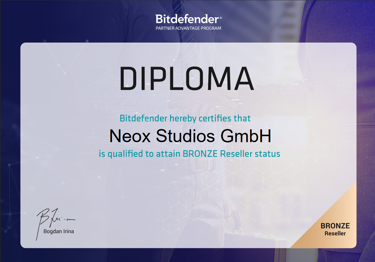 Wir sind offizieller Bitdefender Bronze-Partner und vertreiben die Produkte im Auftrag von Bitdefender.